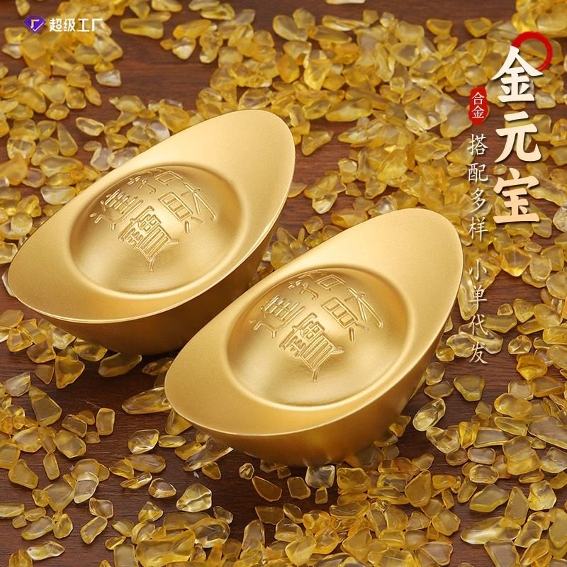 金元宝家居金属工艺品招摆件米合金实心仿真元宝道具金桌面黄铜