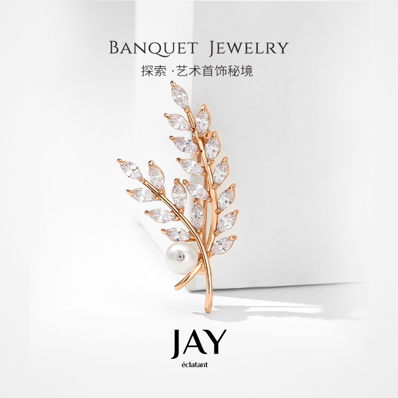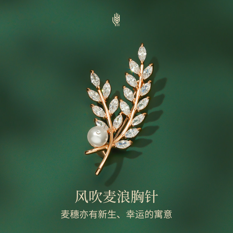 JAY璀璨麦穗胸针高档女奢华气质胸花高端别西装别针大衣配饰秋冬