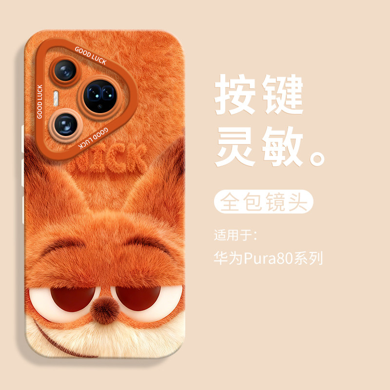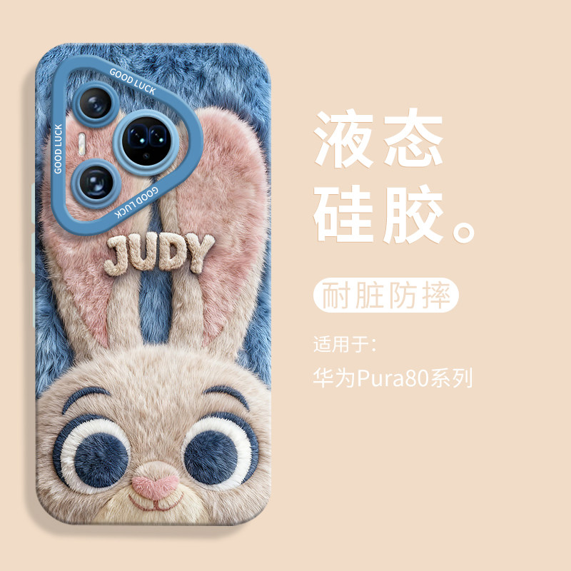 毛茸茸朱迪尼克头适用华为pura80手机壳pura80pro瞳眼液态硅胶壳pura80ultra男女Pura80pro+软壳p80卡通情侣