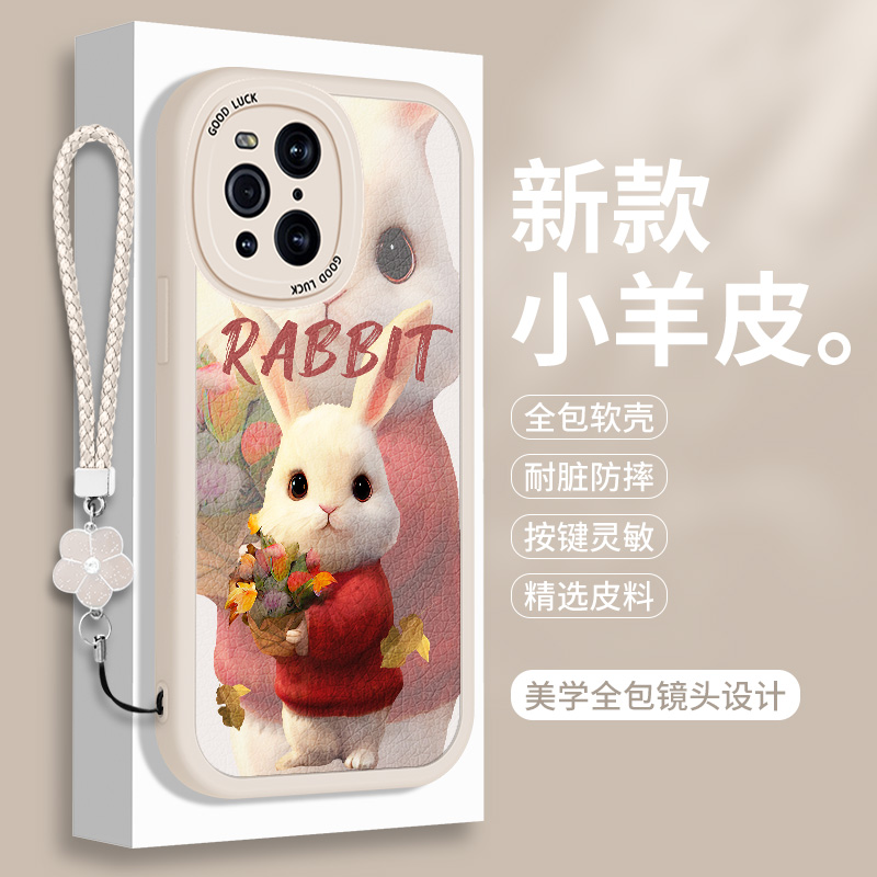 小羊皮适用OPPOfindX3手机壳findx3Pro高级感OPPO兔子x3por摄影师版软壳女find全包OPPOx硅胶fandx防摔保护套