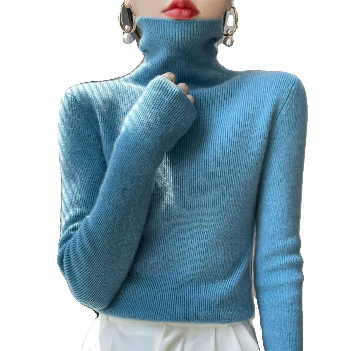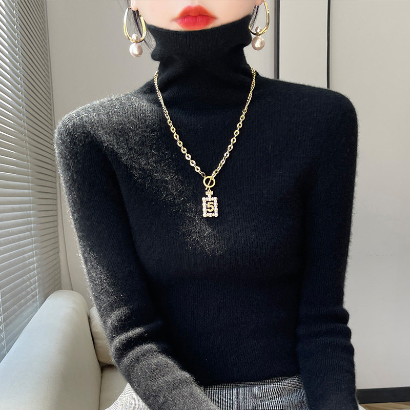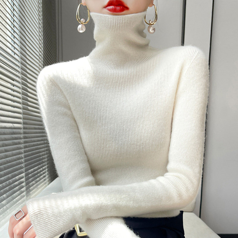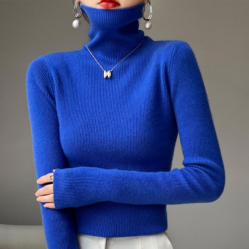 不起球秋冬新款高领毛衣女修身内搭紧身羊毛打底衫堆堆领洋气针织