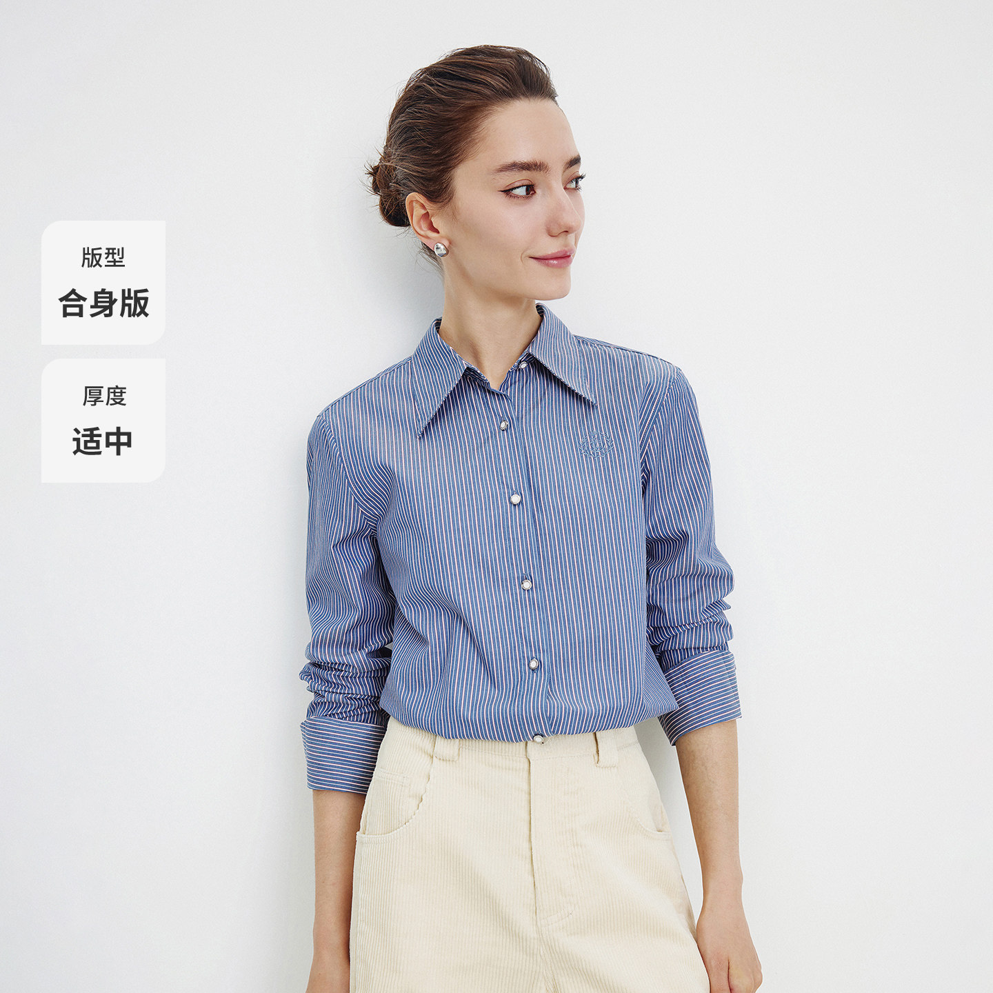 [纯棉]Navigare意大利小帆船条纹长袖衬衫女春季新款通勤休闲衬衣