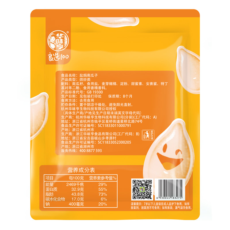 华味亨南瓜子 盐焗小袋装原味白瓜籽仁美人甲炒熟零食新货