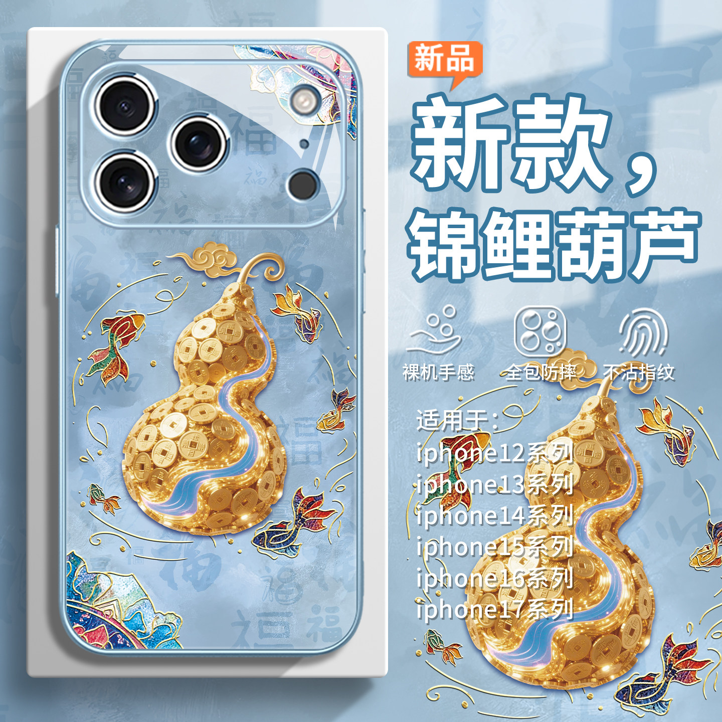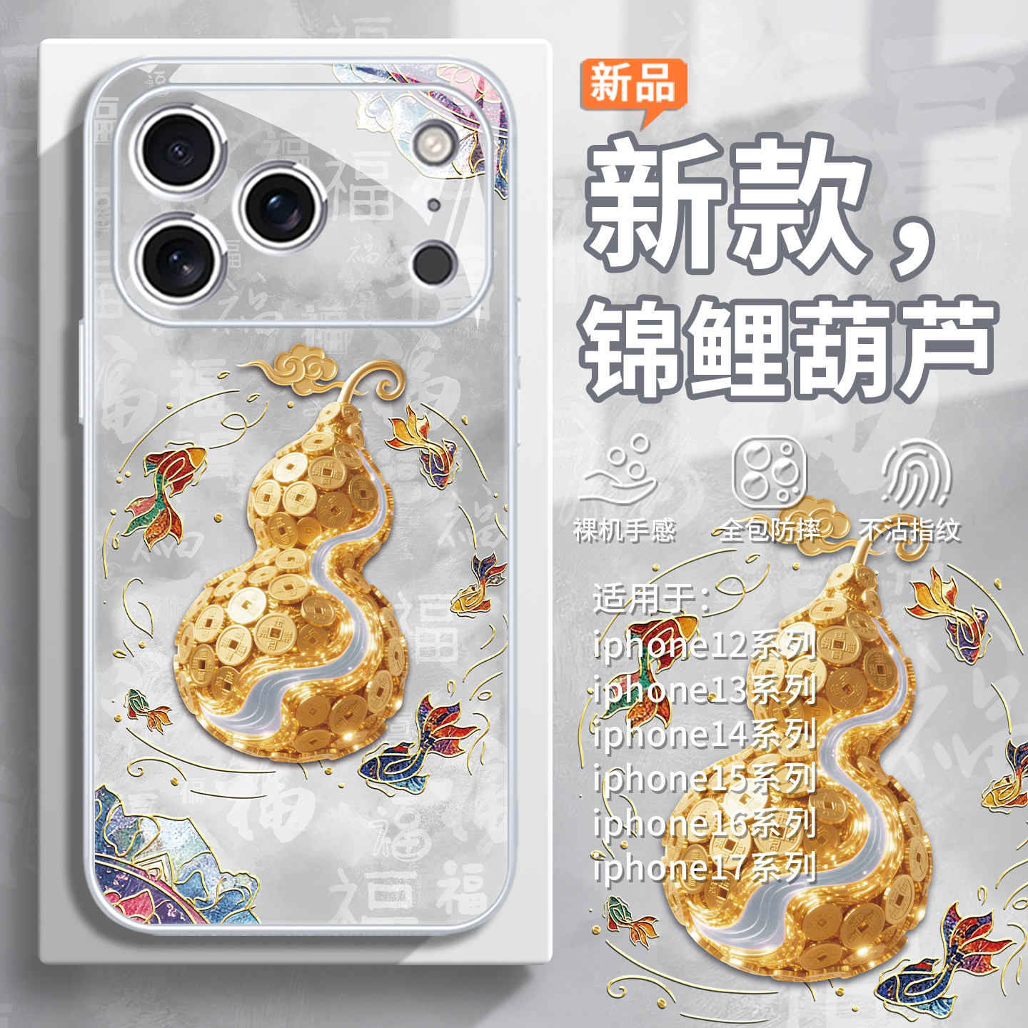国风锦鲤葫芦适用iphone17Pro手机壳16plus国潮苹果14高级感15promax时尚13mini复古ip12招财11好运xs/xr/8/7