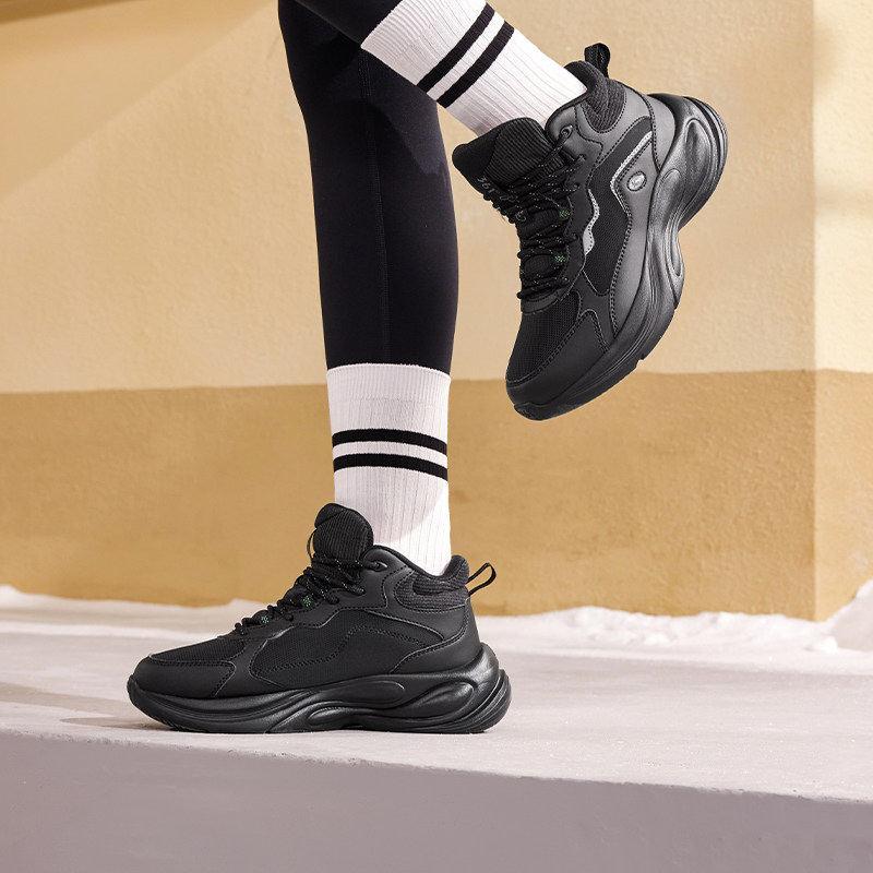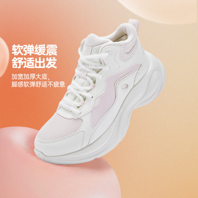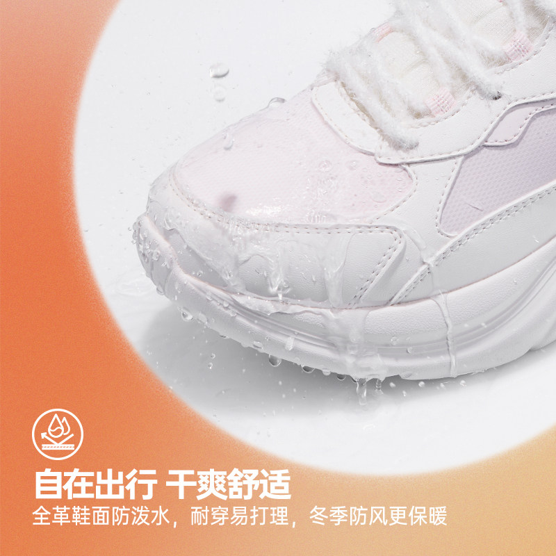 361灵狐2.0女高帮加绒运动鞋冬季加毛保暖雪地大棉鞋皮面防水鞋子