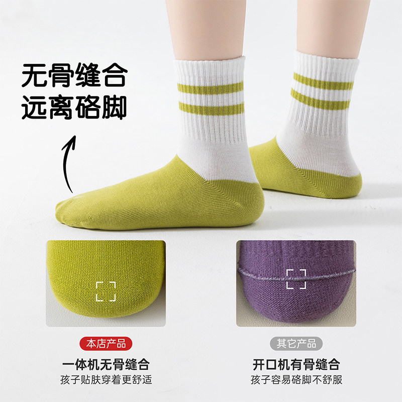 纯棉童袜春秋款夏季薄款防臭不起球男女袜子全棉中筒袜时尚儿童袜