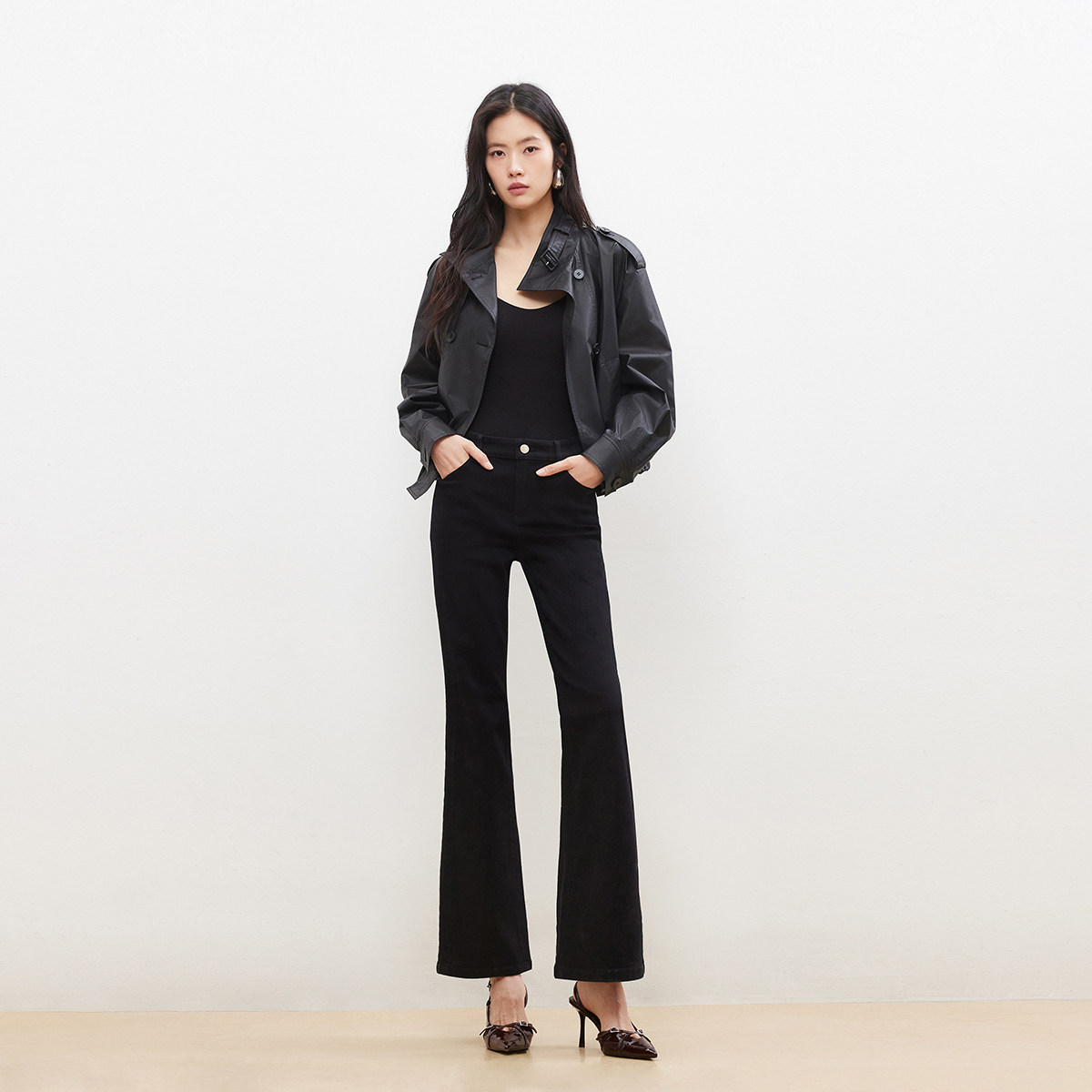 twosweet【超级裤神】四面弹重塑大长腿高腰直筒微喇叭原色牛仔裤