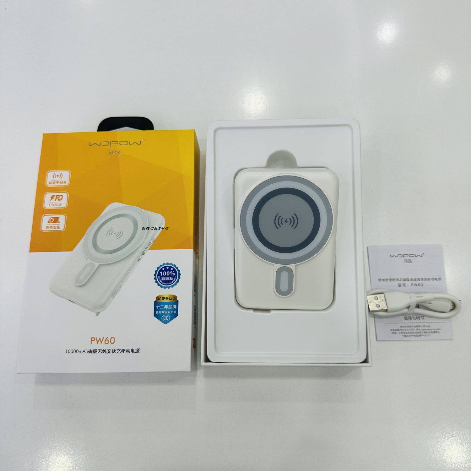 沃品充电宝PW60磁吸无线充新国标户外便捷移动电源新款自带支架款