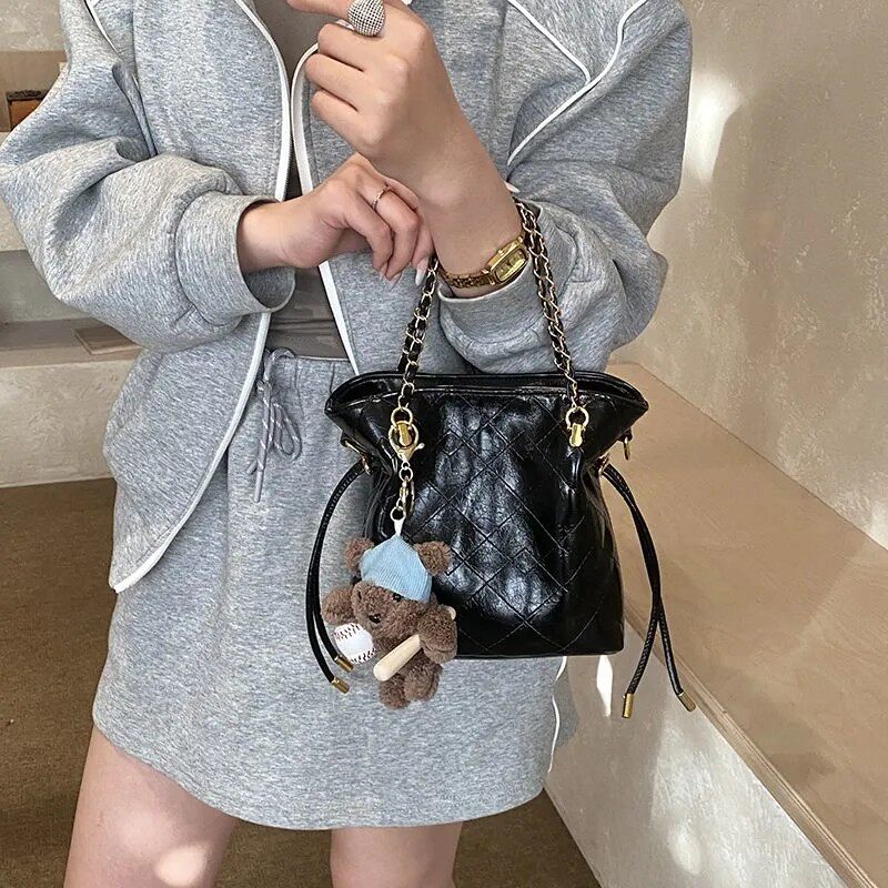 小香风菱格链条手提水桶包包女2026新款高级感轻奢小众斜挎包小包