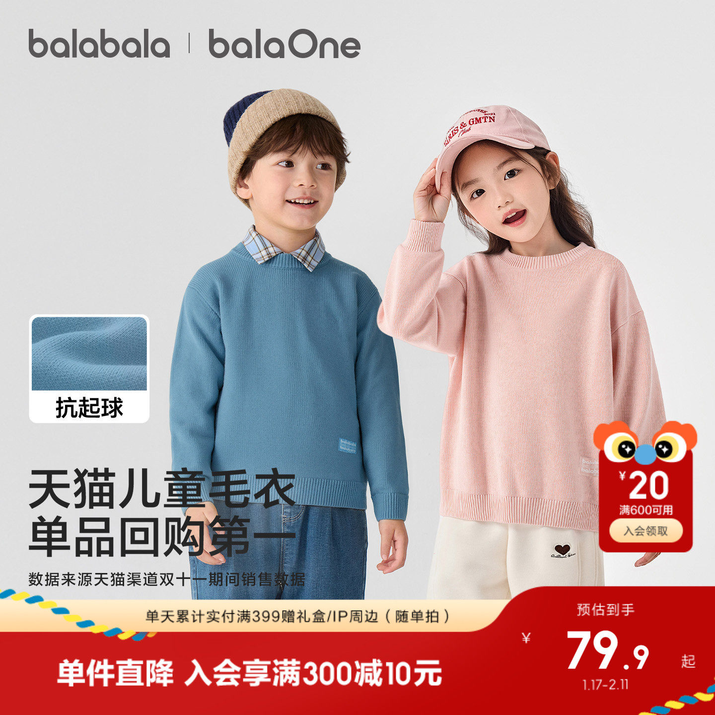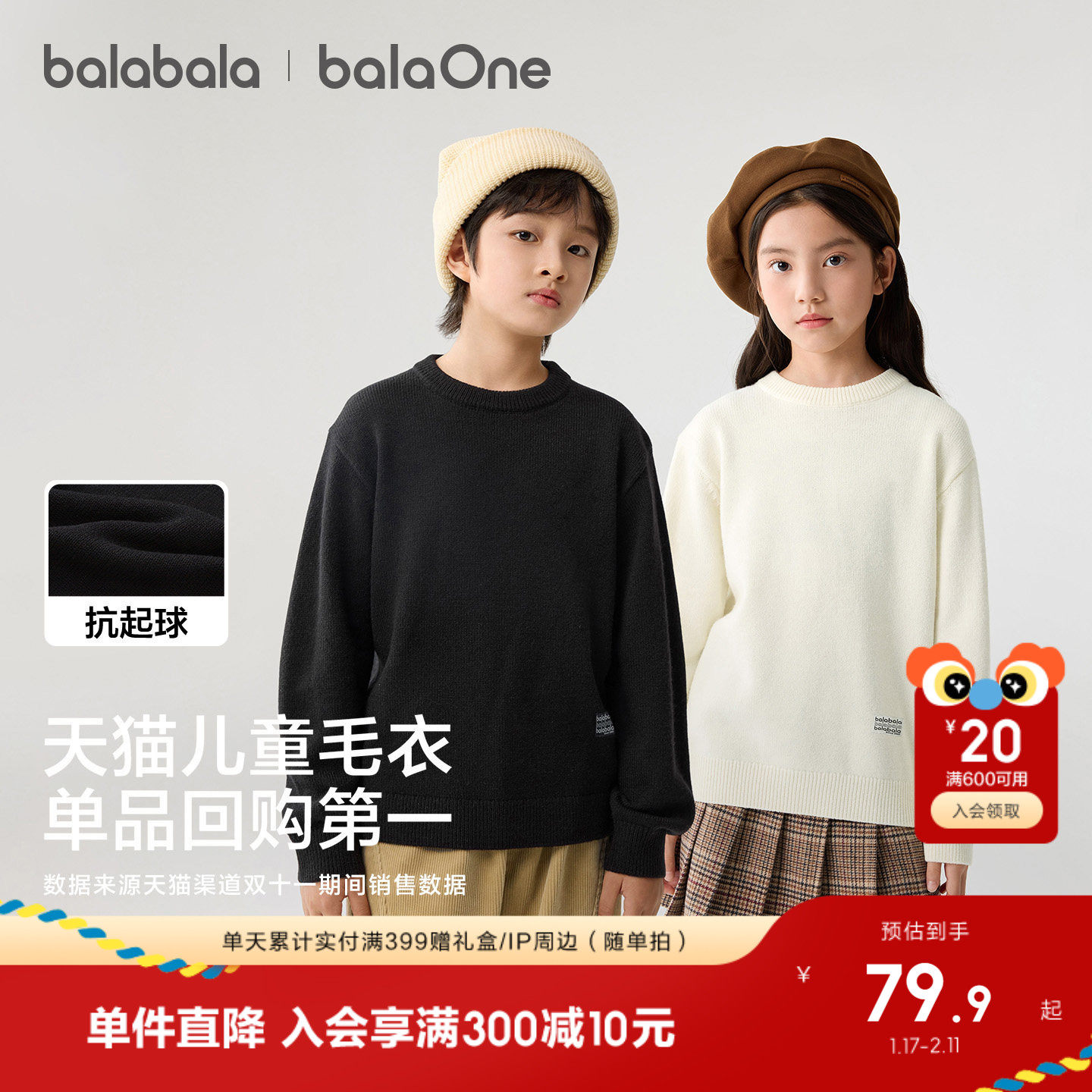 巴拉巴拉童装儿童毛衣男童女童2025新款秋冬宝宝套头毛衫针织打底