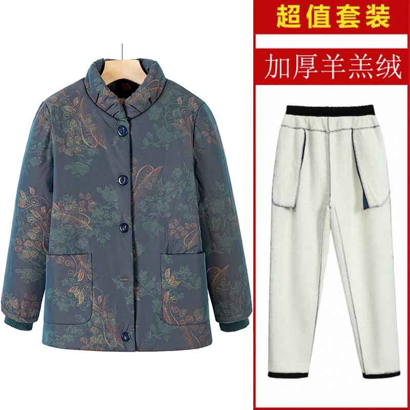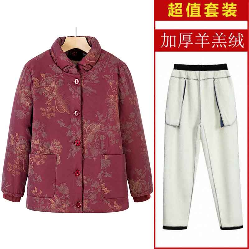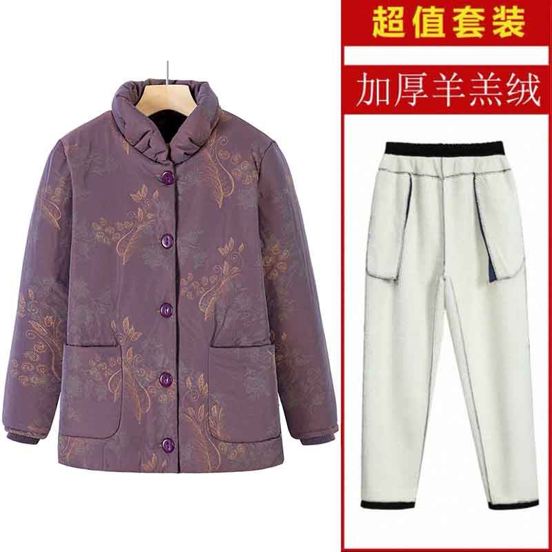 妈妈冬装德绒棉衣内胆女中老年轻薄棉衣棉裤保暖套装奶奶夹棉外套