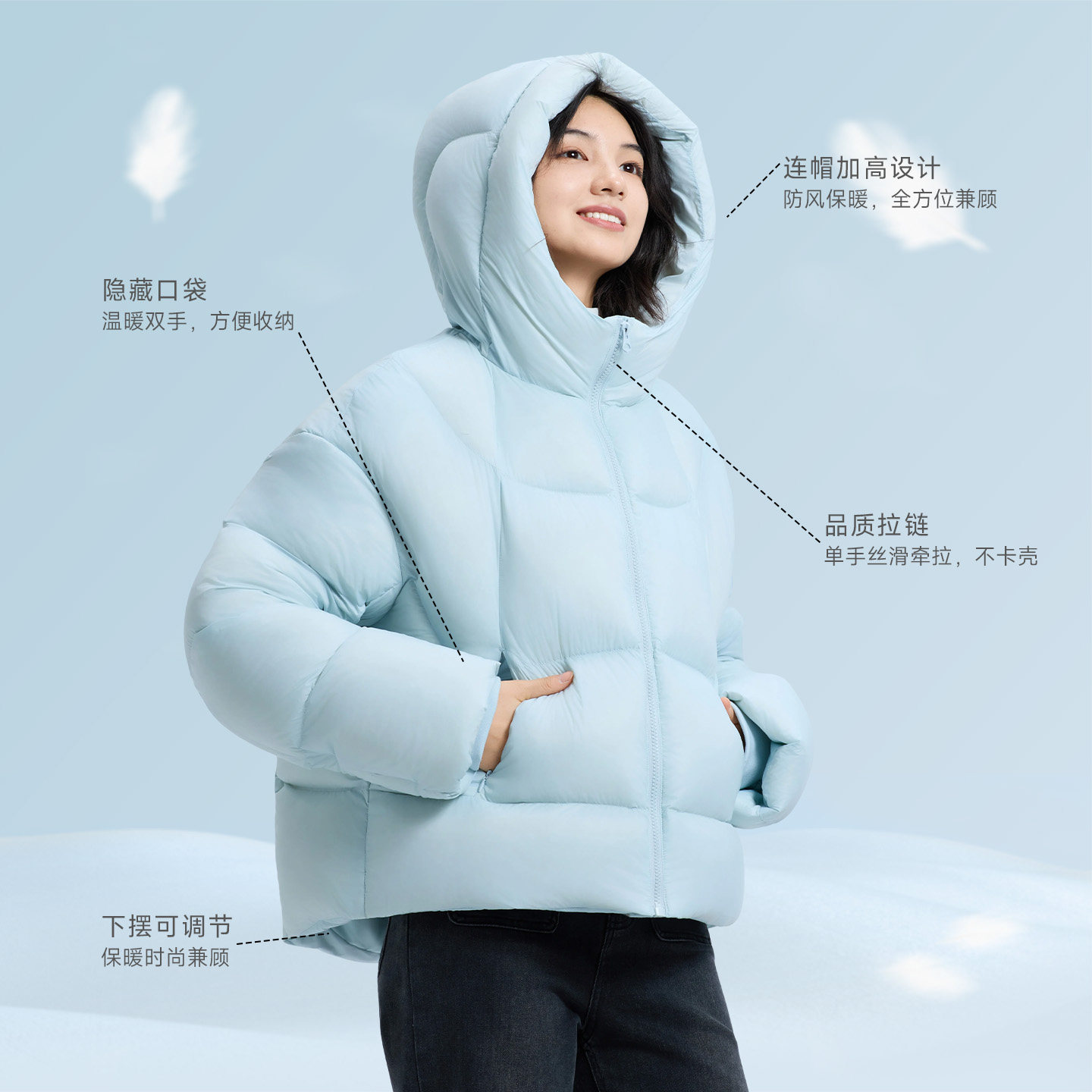 美特斯邦威女装羽绒服2025冬季宽松短款保暖连帽潮流休闲女士外套