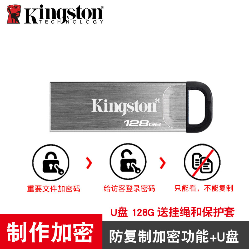 金士顿u盘128g正品高速usb3.2定制加密华硕戴尔笔记本电脑办公v盘