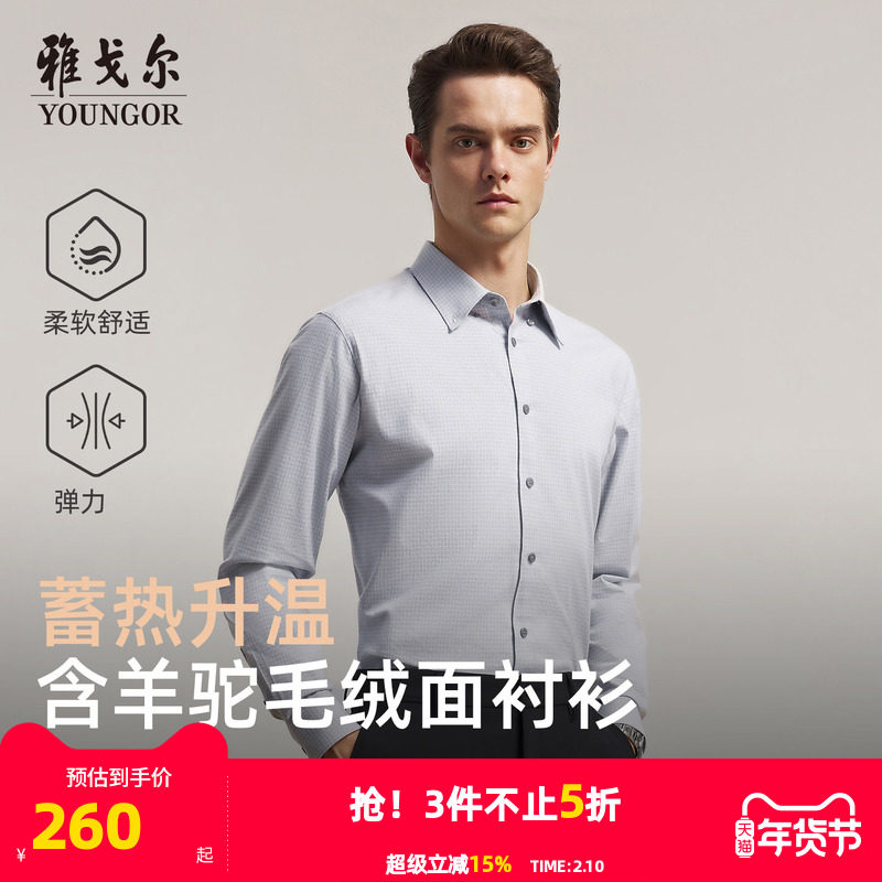 【绒面蓄热升温】雅戈尔官方秋季新品商务休闲保暖格纹长袖衬衫男