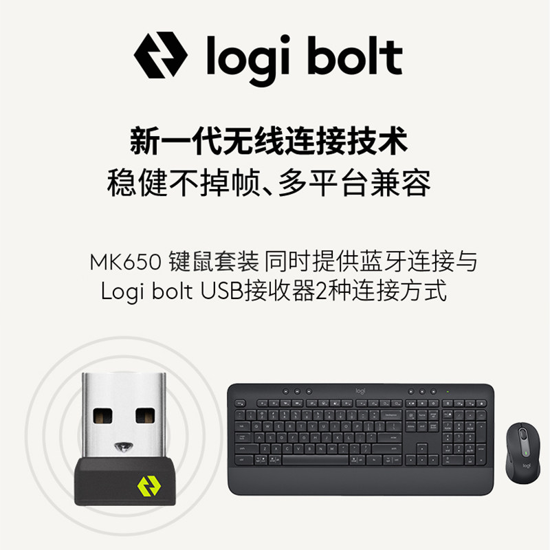 罗技优选系列MK650商用无线蓝牙键鼠套装办公家用打字电脑双模