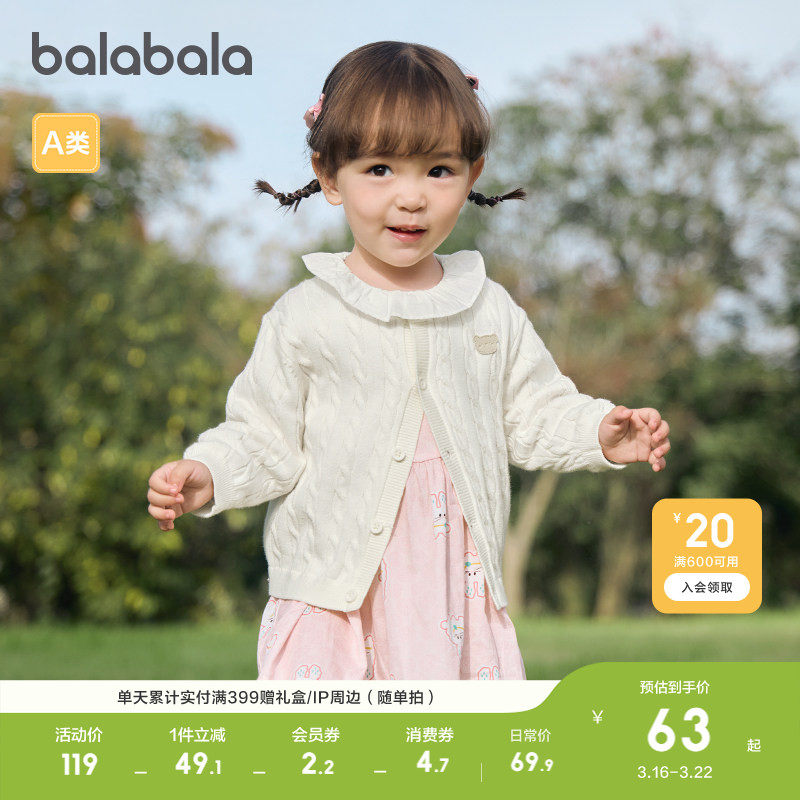 巴拉巴拉童装婴儿针织衫儿童薄开衫宝宝毛衣装2026新款春秋纯棉萌