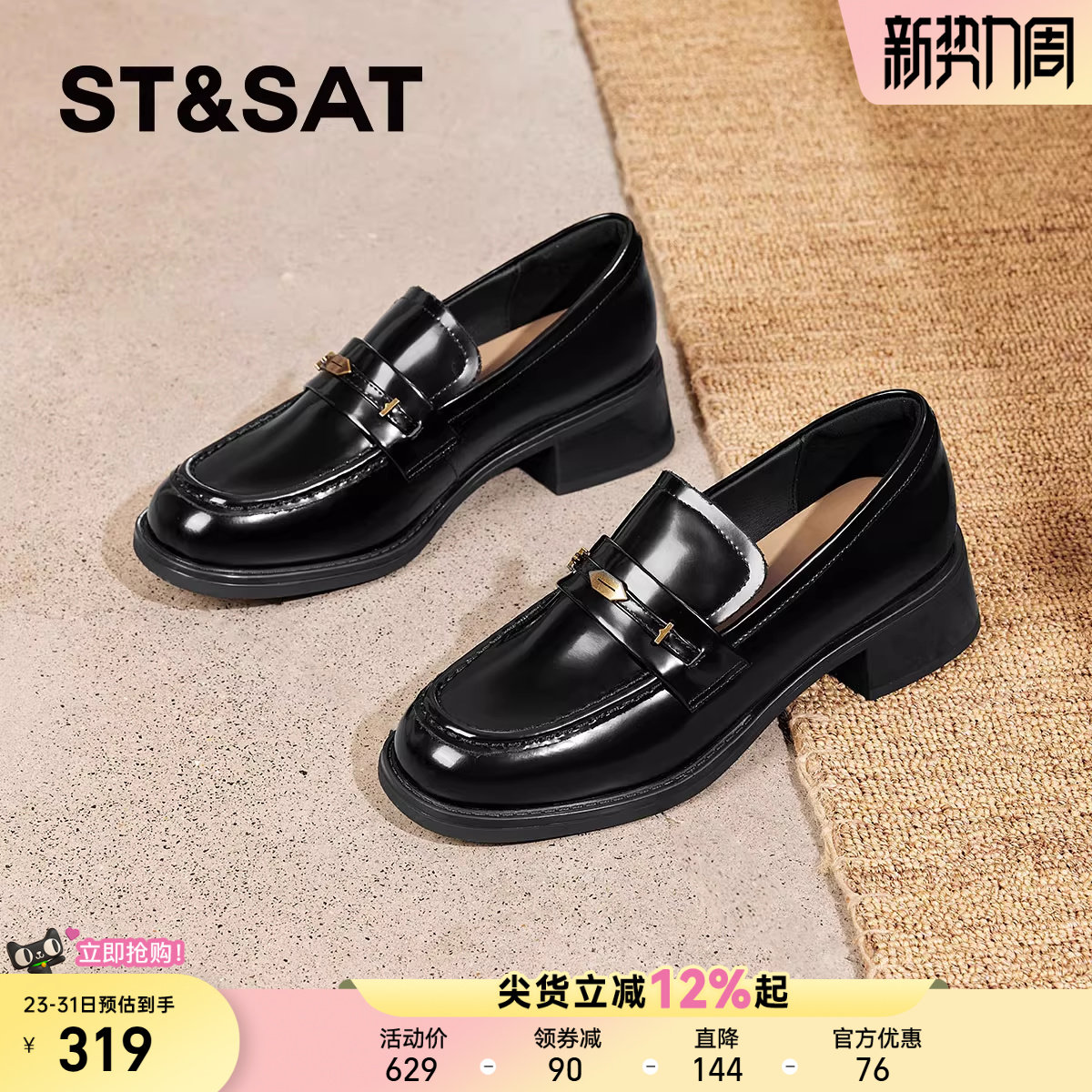 星期六头层牛皮乐福鞋女2025新款学院风粗跟通勤单鞋软一脚蹬单鞋