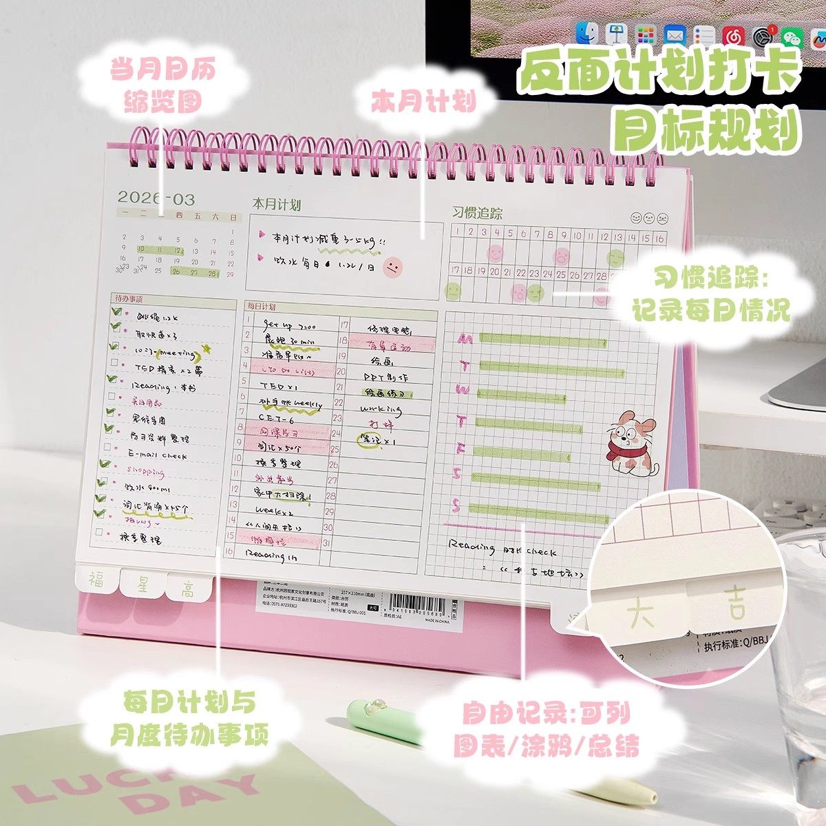 2026年新款台历创意卡通日历全年马年迷你小台历桌面摆件办公室学生每日计划表工作自律打卡记事mini计划月历