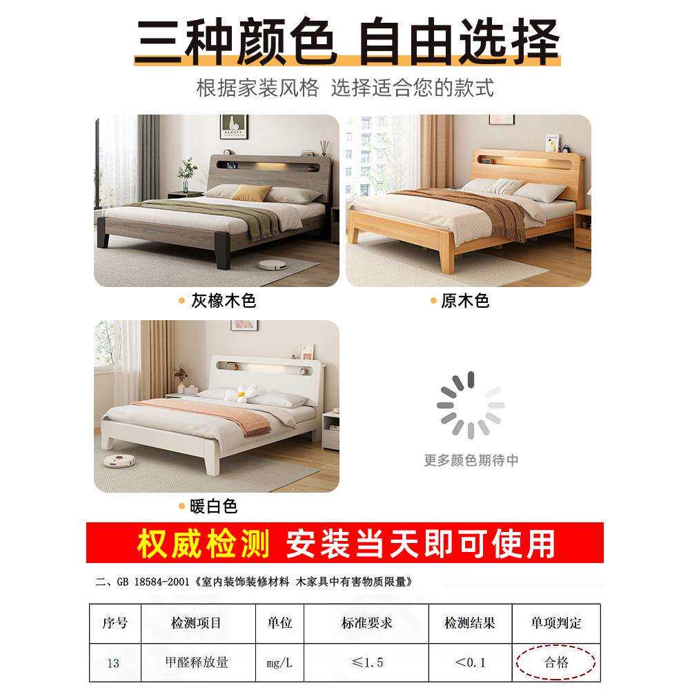 实木床现代简约1.8米双人床1.5出租房家用主卧经济型1.2m单人床架