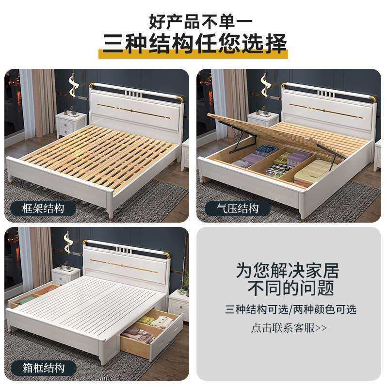 新中式全实木床双人床现代简约主卧1.8m白色公主床奶油风婚储物床