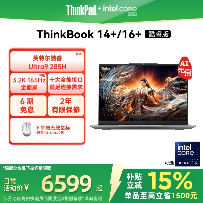 【政府补贴】ThinkPad联想ThinkBook14+16+英特尔Evo酷睿Ultra 1T商务办公学生游戏轻薄笔记本电脑官方