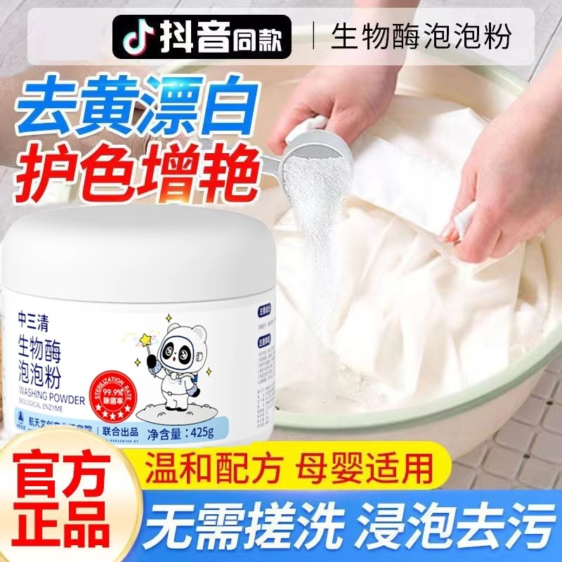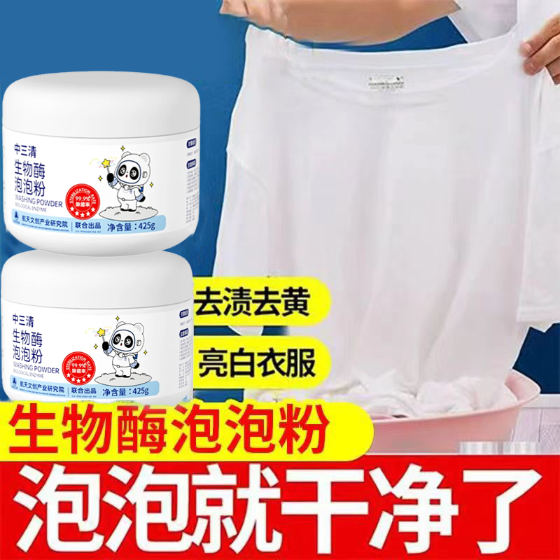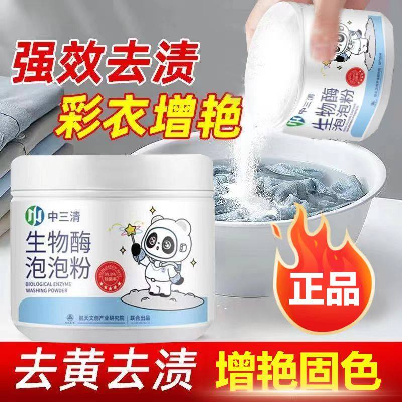 中三清生物酶泡泡粉洗衣去污渍强漂白剂懒人衣物去渍去黄增白神器