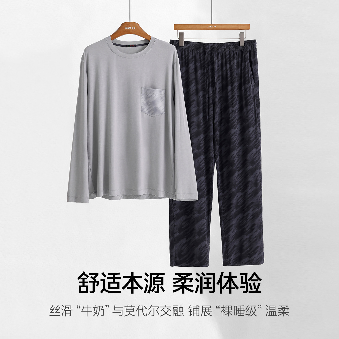 【沁凉】爱慕先生含莫代尔可外穿圆领套头长袖长裤家居服26春夏