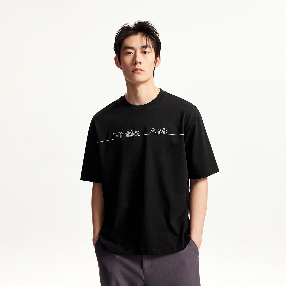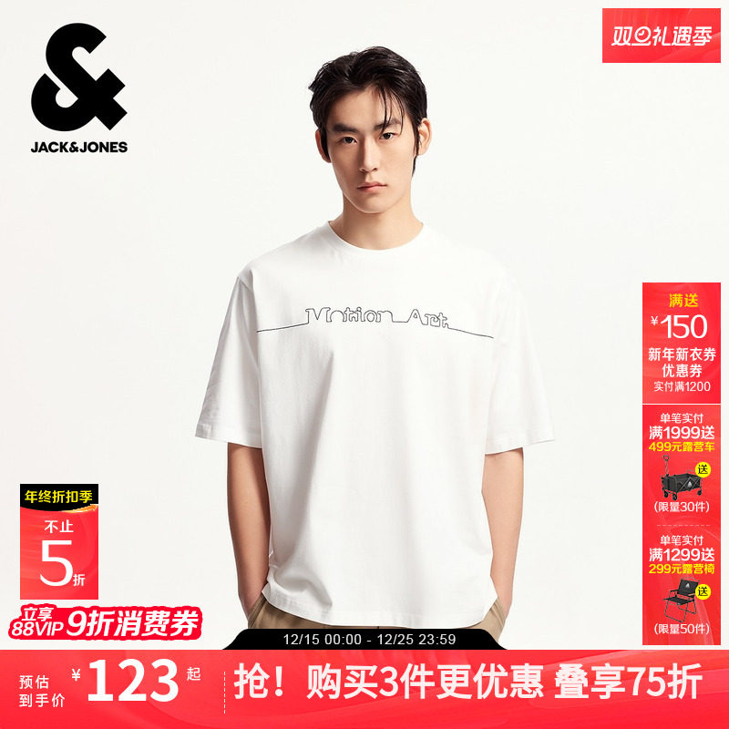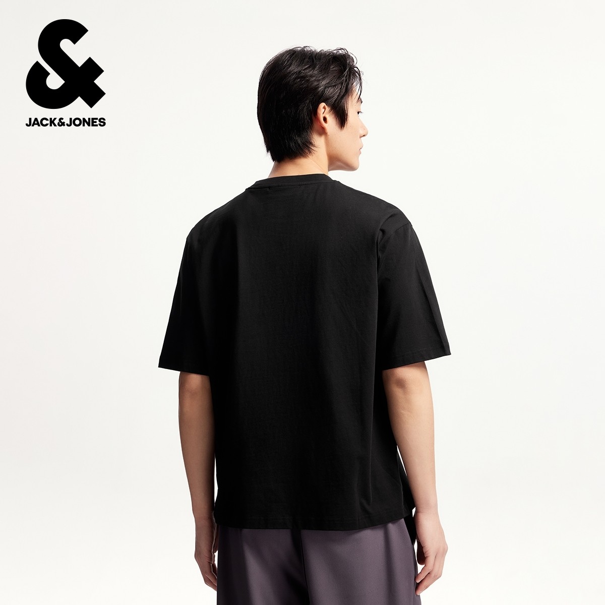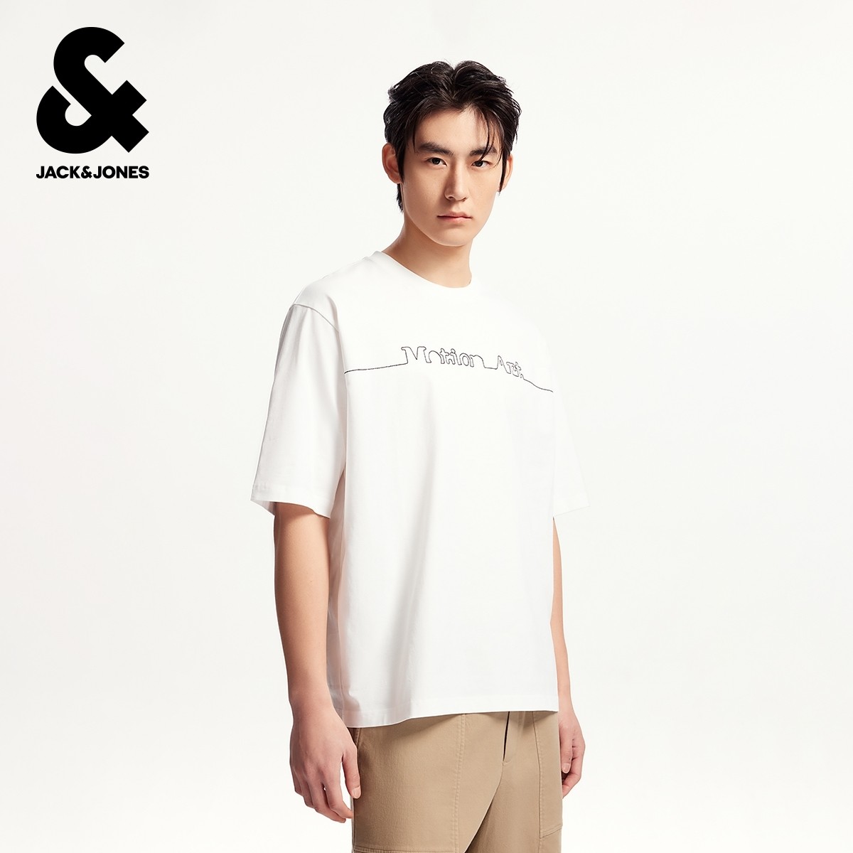 杰克琼斯男装秋季舒适时尚纯棉简约百搭字母刺绣宽松圆领短袖T恤