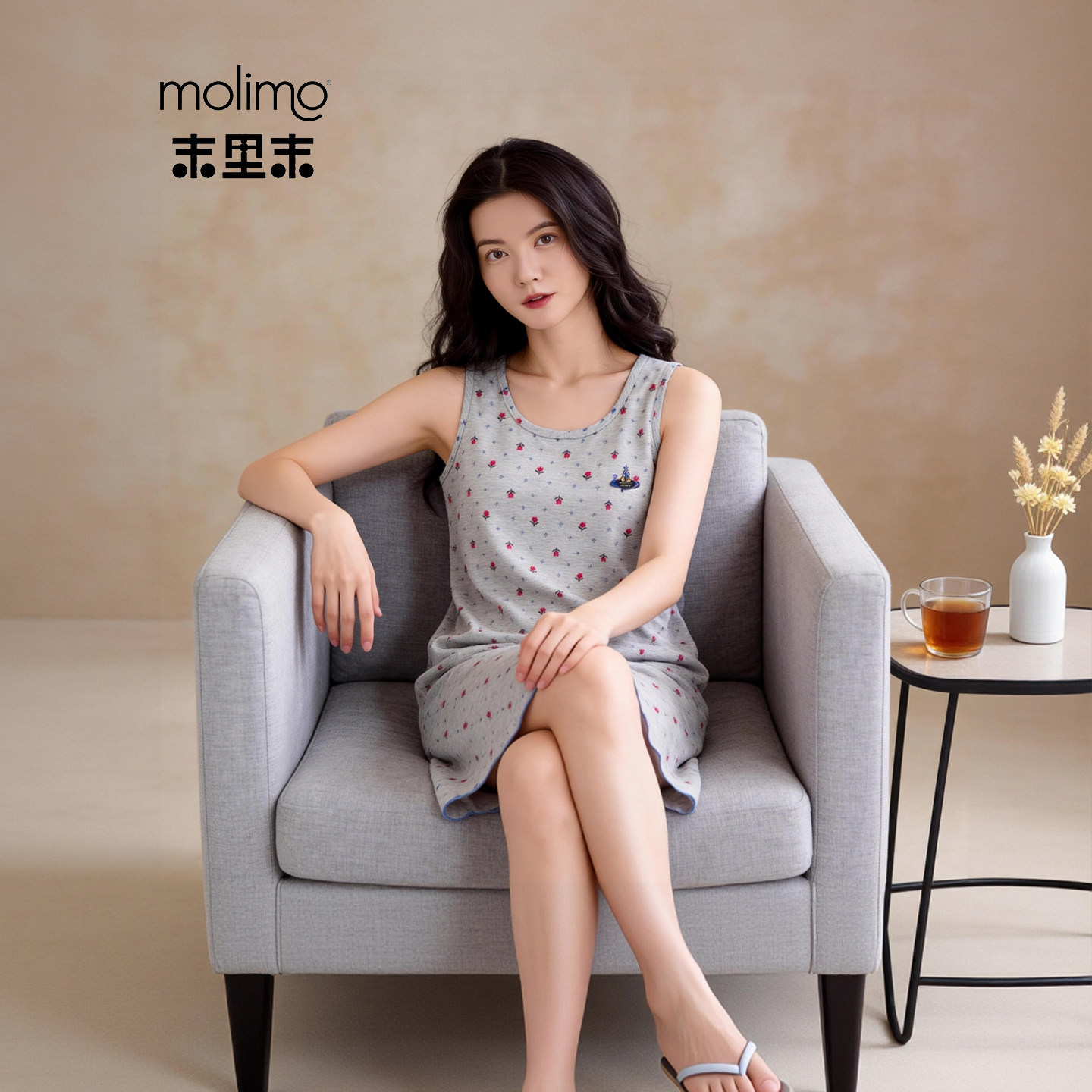 末里末【灰调蔷薇】2026夏季新款短袖大码休闲睡裙甜美复古家居服