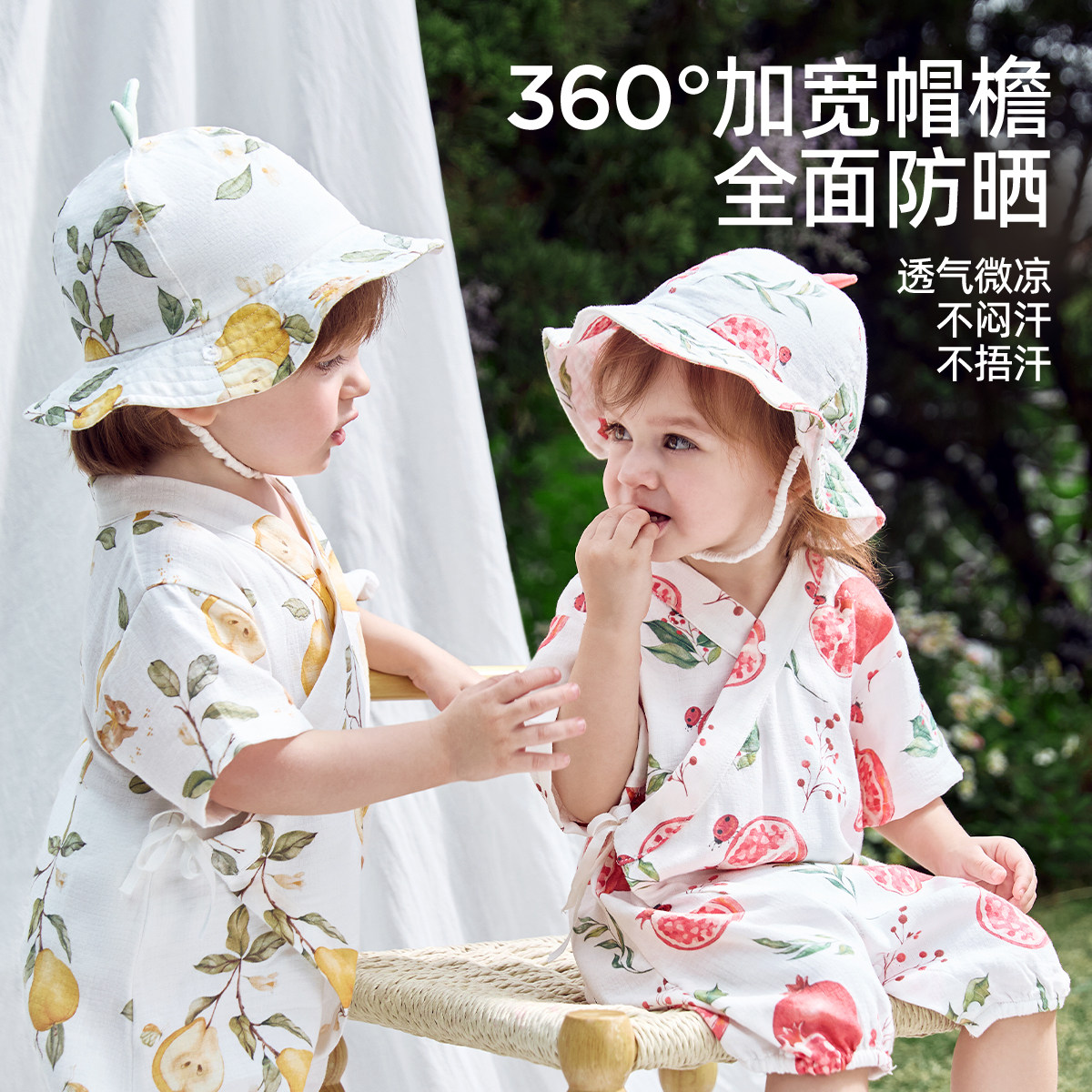 KK树原纱儿童防晒帽夏季男童女童户外遮阳帽宝宝空顶太阳帽大帽檐