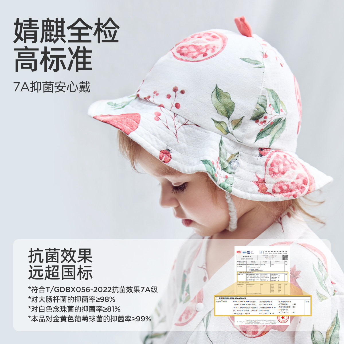 婧麒宝宝帽子夏季薄款渔夫帽儿童防晒帽婴儿遮阳帽夏天外出大帽檐