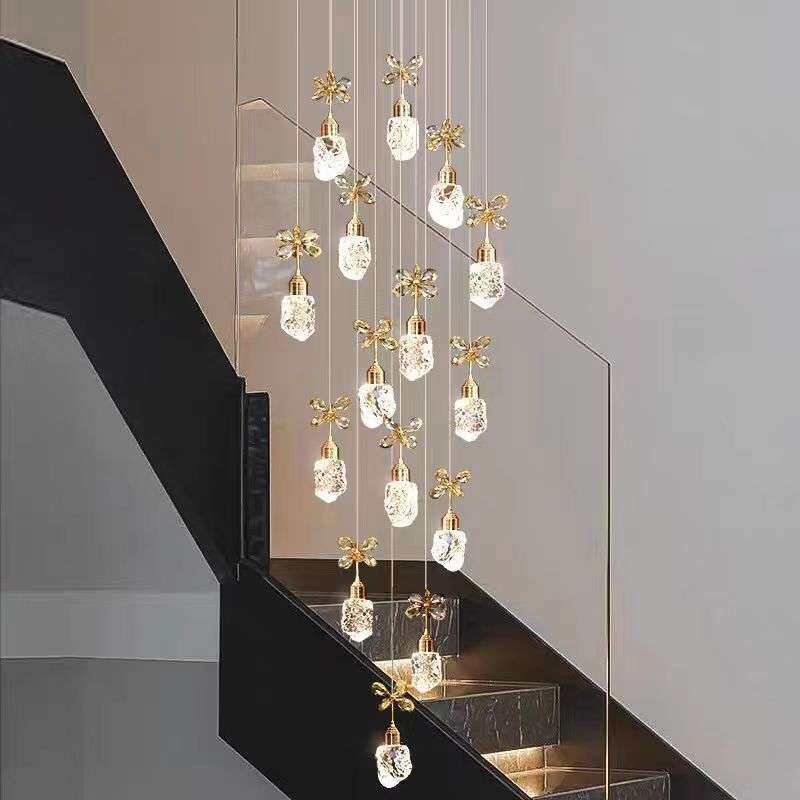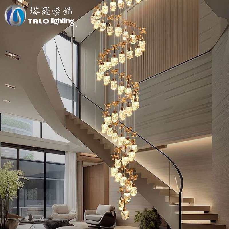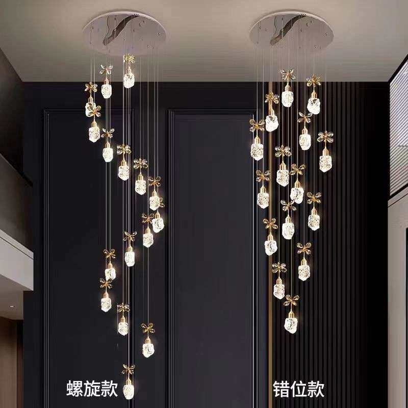 轻奢水晶楼梯灯复式楼挑空客厅吊灯loft别墅公寓旋转楼梯间长吊灯