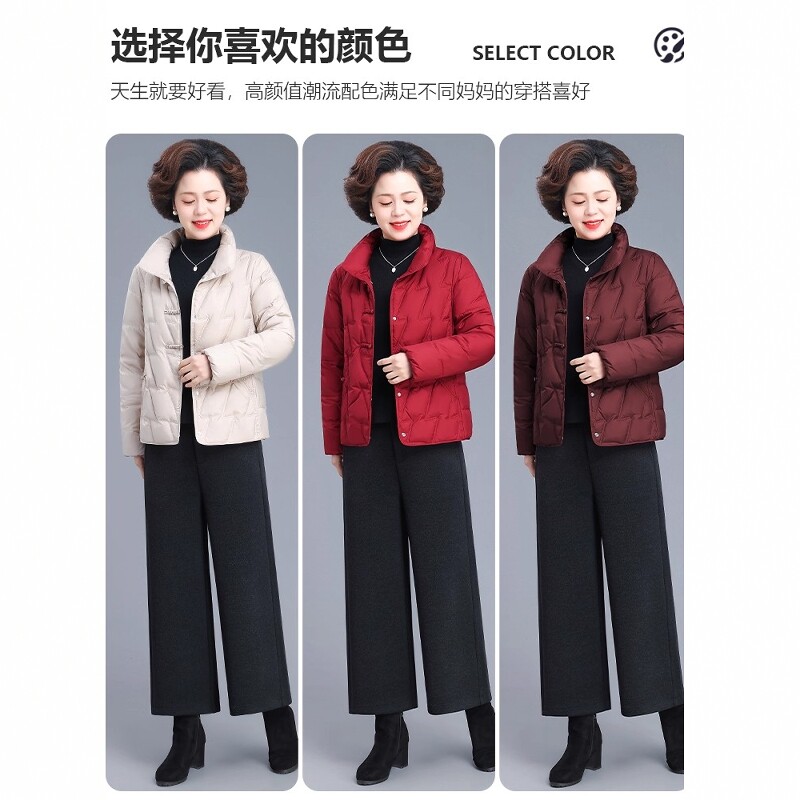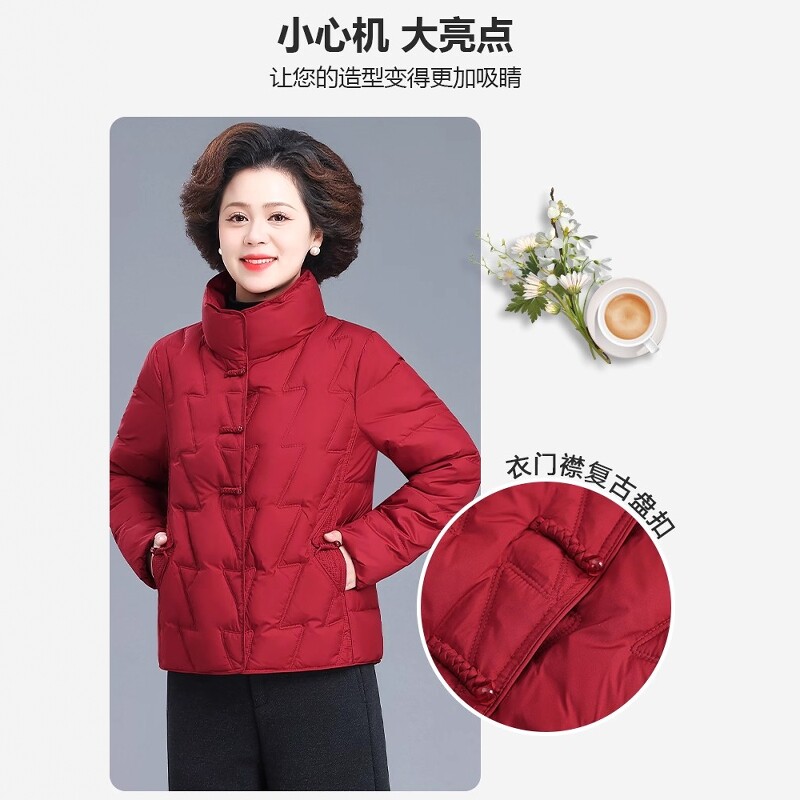 小个子妈妈冬装羽绒服短款衣服中老年人冬季外套女款新毛衣薄款