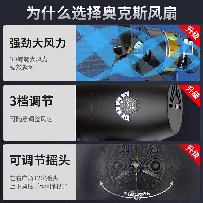 奥克斯牛角落地扇工业强力风扇大功率家用工厂车间摇头电扇大风力
