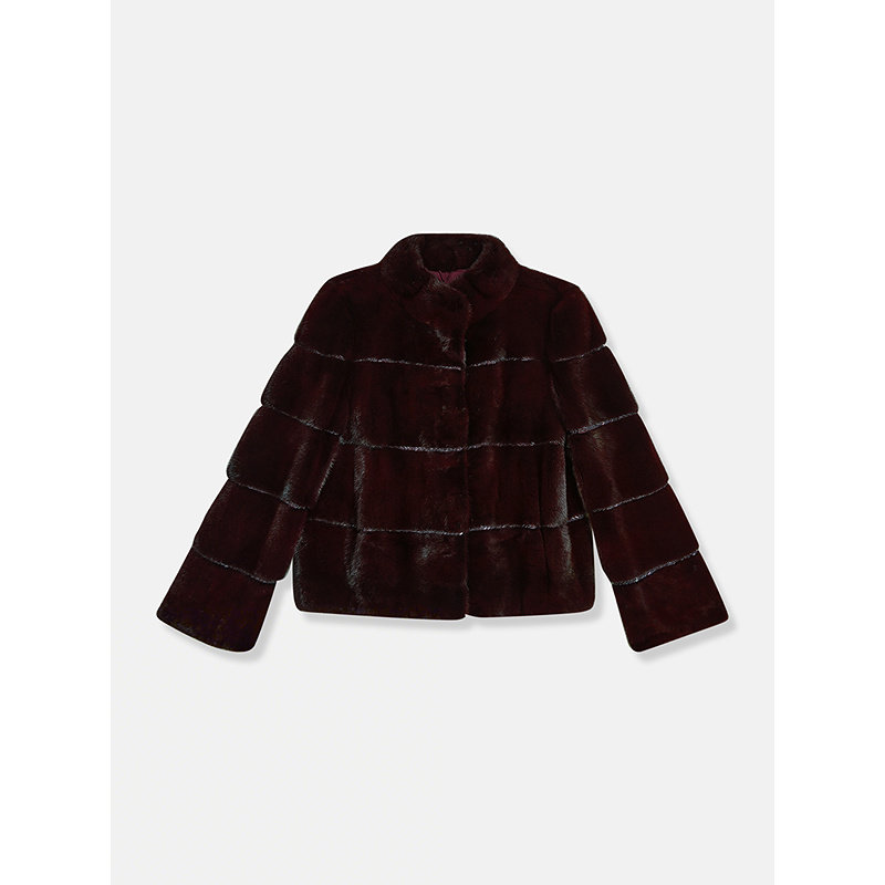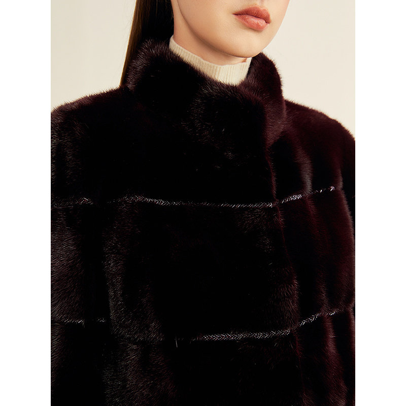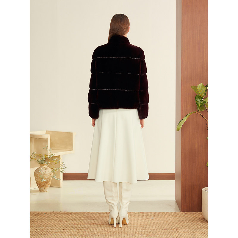 YINER音儿2025冬季新款法式酒红色丹麦水貂重工钉珠H型短款皮草