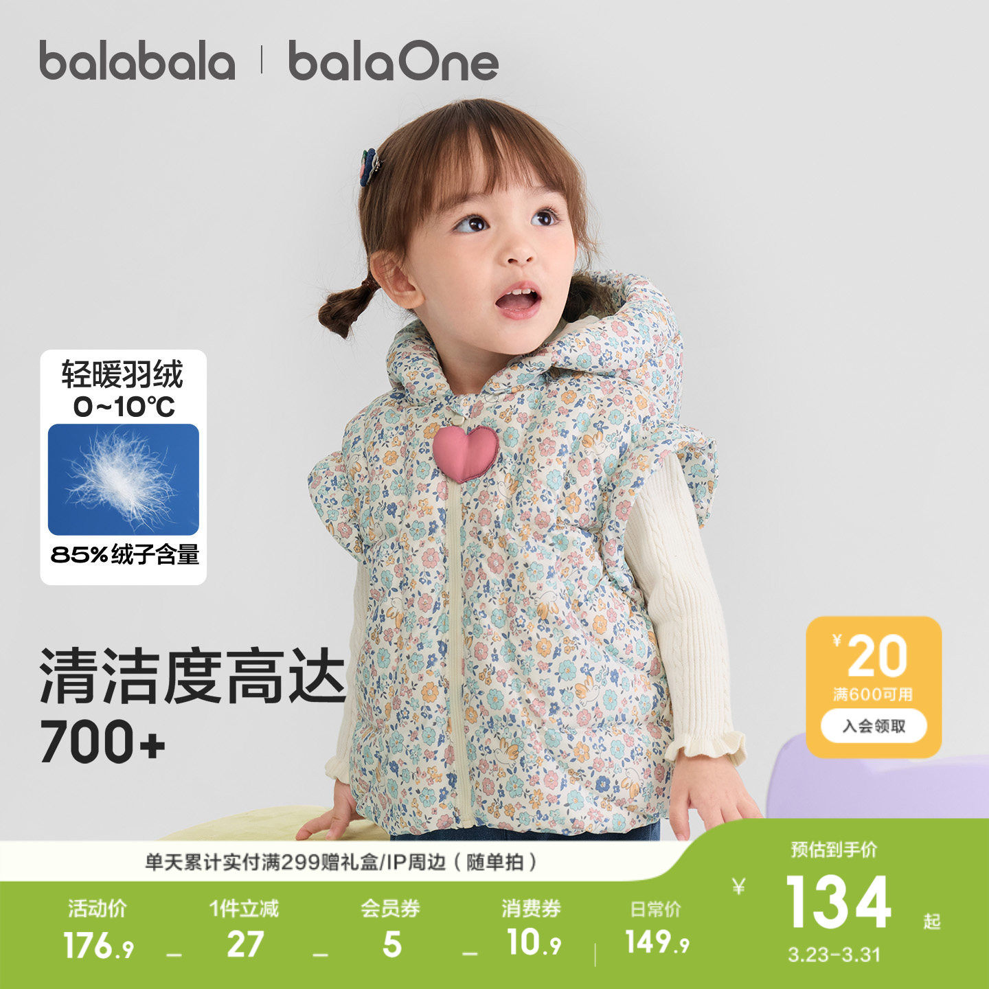 巴拉巴拉balaOne儿童羽绒马甲女童男童小童外套新款童装2025秋冬