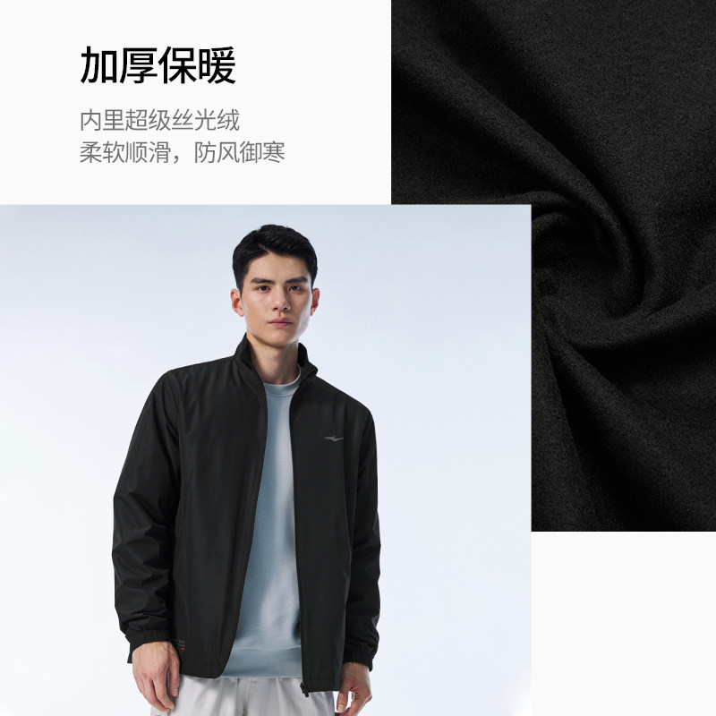 鸿星尔克加绒外套男2025冬季新款男士立领运动防风衣夹克通勤男装