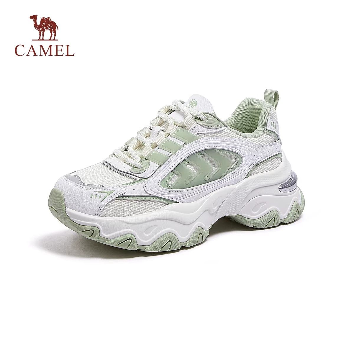 骆驼银月运动鞋银色老爹鞋厚底增高网面透气休闲时尚运动鞋女鞋