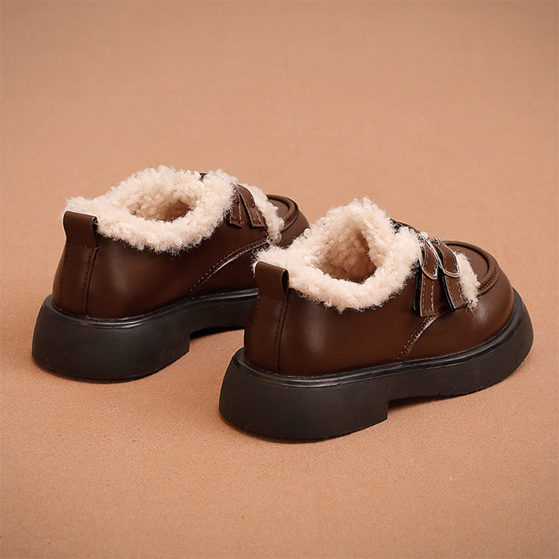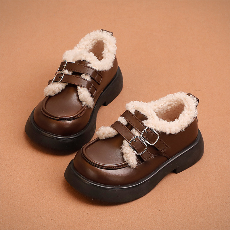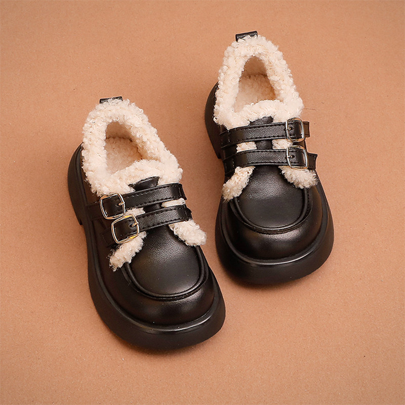 女童皮鞋冬款2025潮牌新款儿童二棉豆豆鞋小女孩公主加绒棉鞋软底