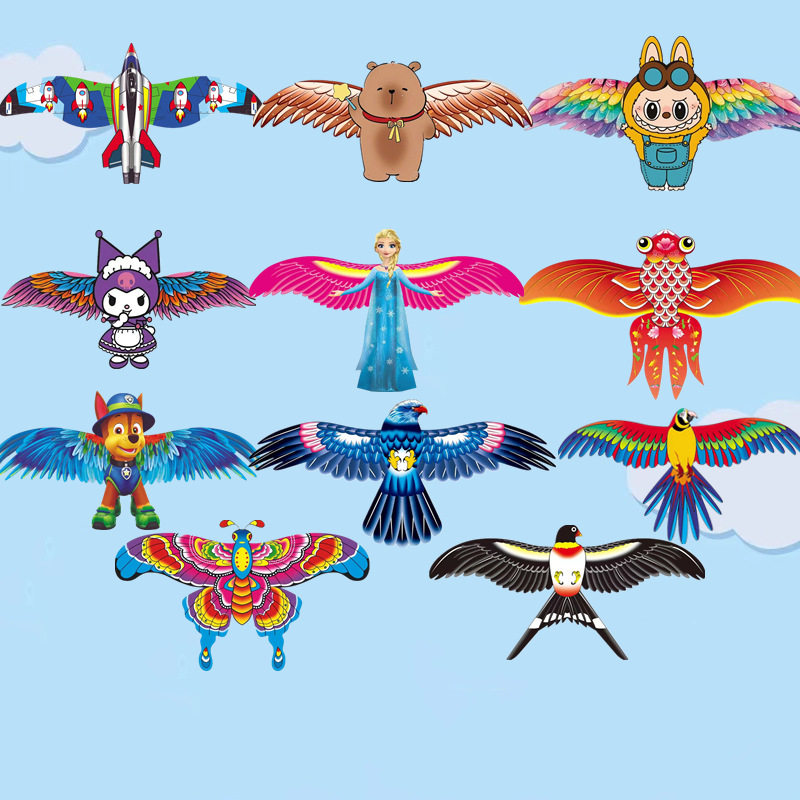 新款儿童动态鱼竿风筝手持鱼竿风筝金鱼老鹰地摊玩具厂家
