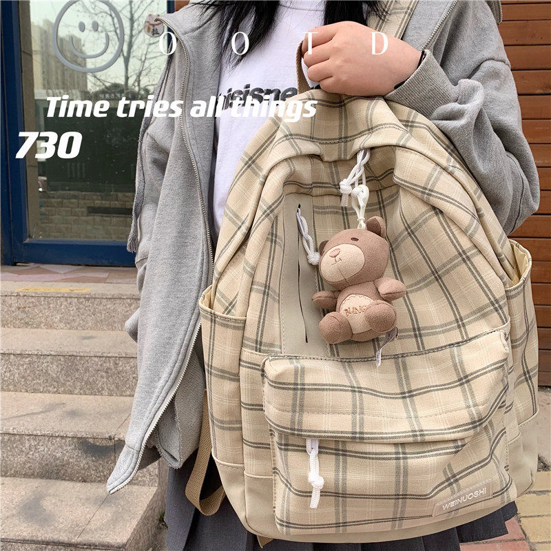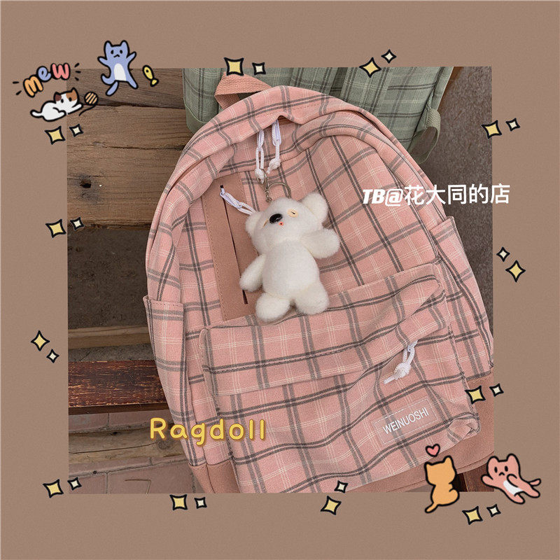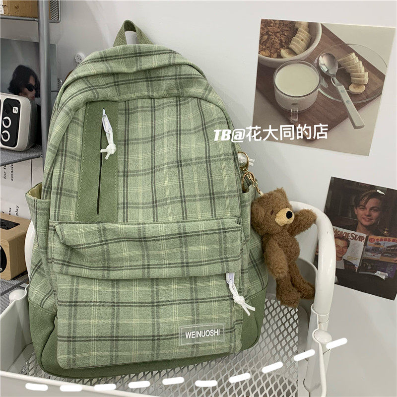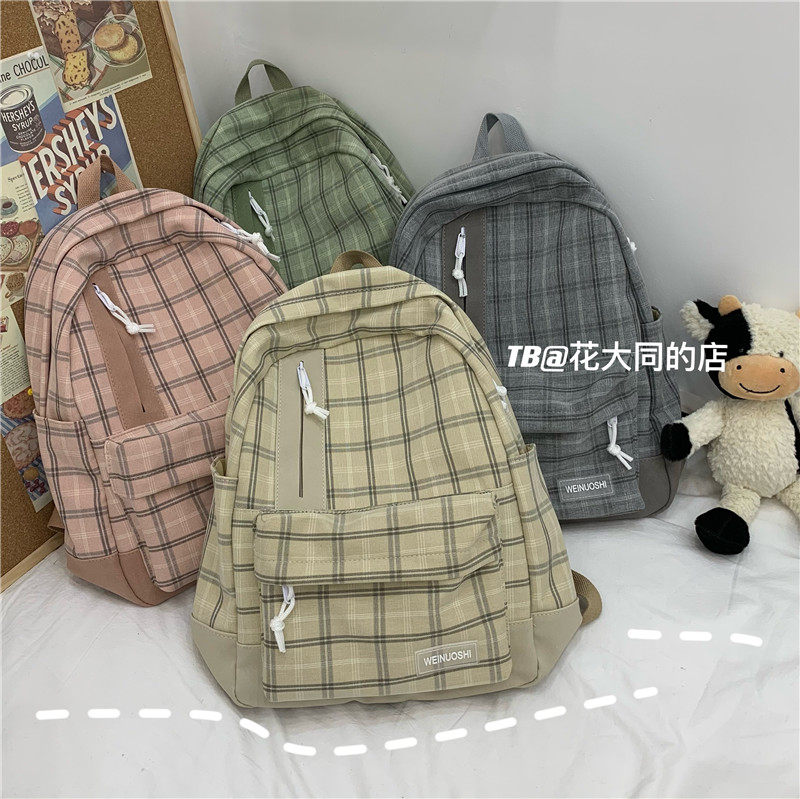 日系文艺格子书包韩版原宿ulzzang高中学生校园背包女双肩包ins风