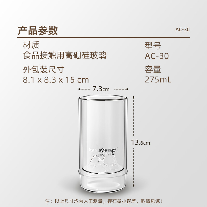 金灶AC-30高硼硅耐热玻璃杯家用女士透明喝水杯办公室个人泡茶杯