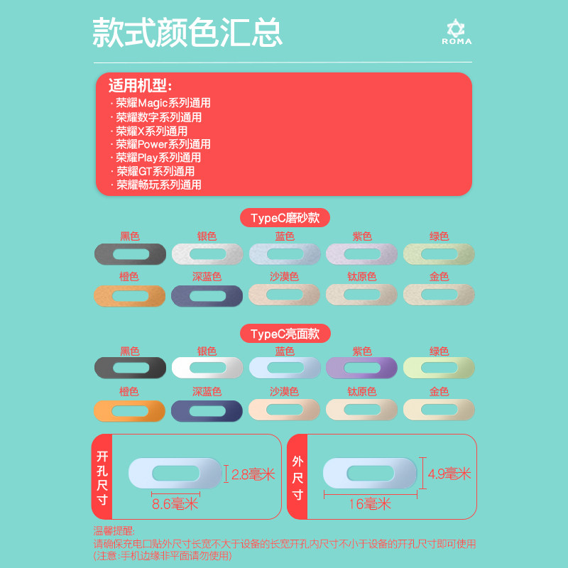 荣耀GT手机充电口保护膜Magic8Pro荣耀500Pro数据口防刮贴膜Play10T畅玩70电源口WIN金属贴X70i边框保护Power