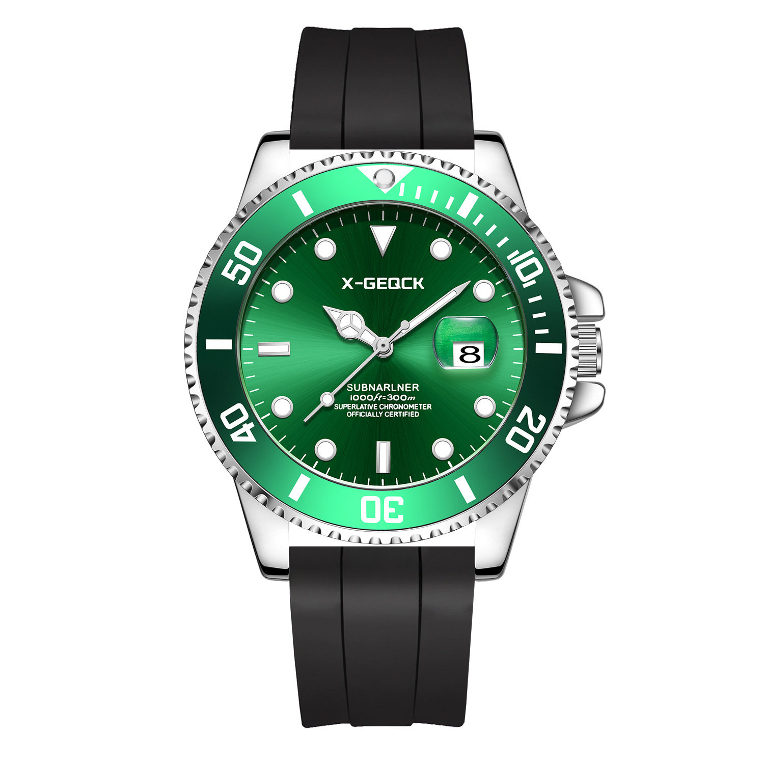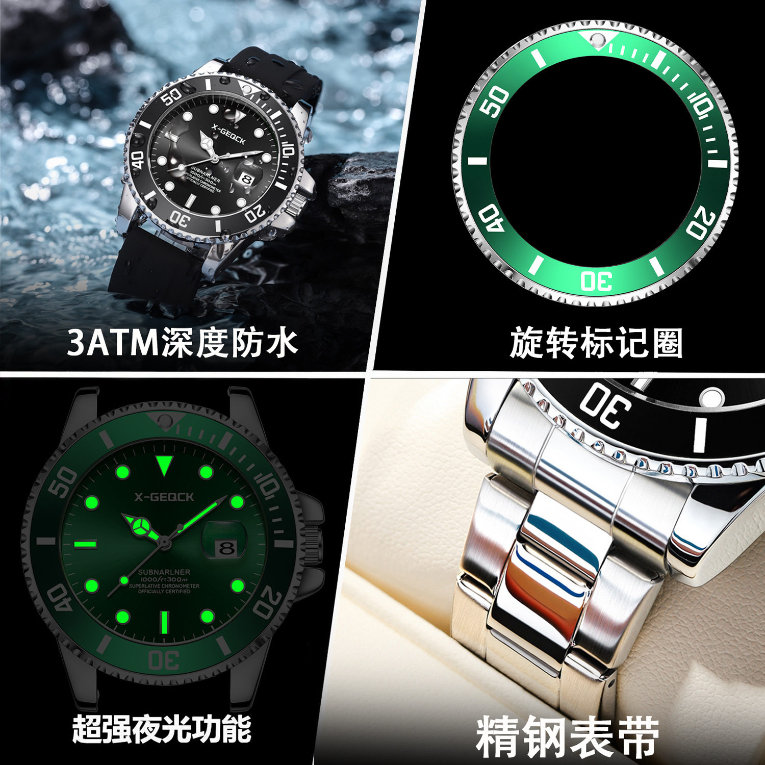 瑞士品牌绿色水鬼仿机械表男士手表防水夜光日历外贸爆款