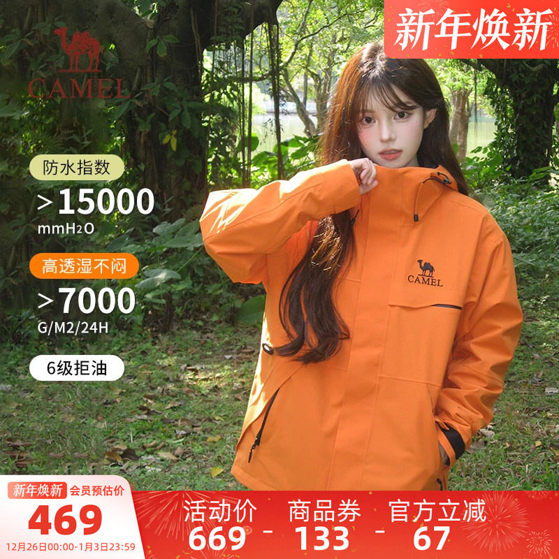 骆驼女装三防橙色冲锋衣三合一春秋新款登山防风防水休闲外套夹克