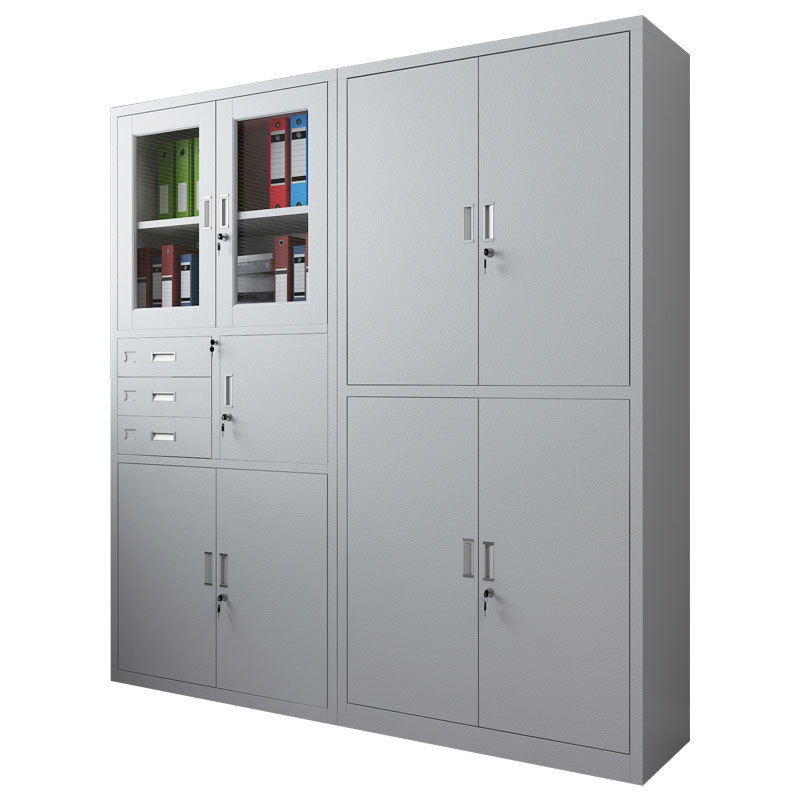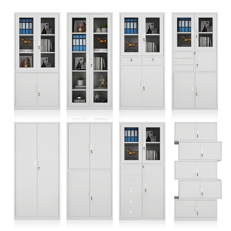 办公室文件柜钢制储物资料柜加厚档案铁皮柜矮柜玻璃五节凭证柜子