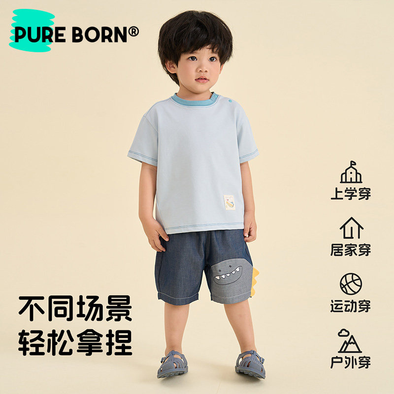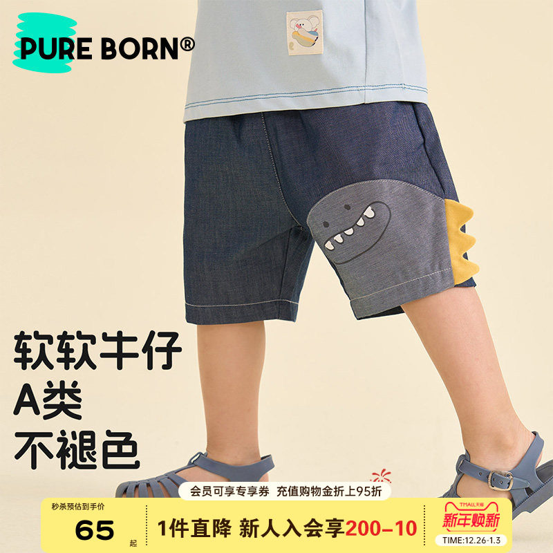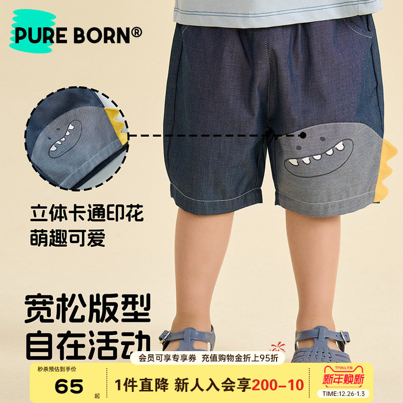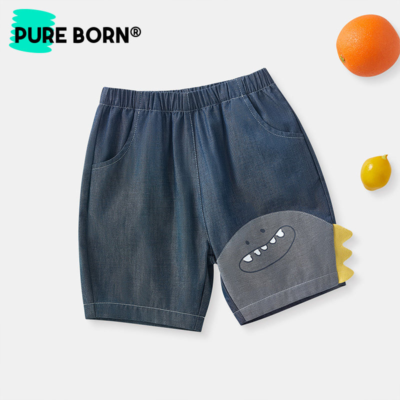 【软牛仔】博睿恩儿童短裤2025夏季新款男女宝宝卡通柔软牛仔裤