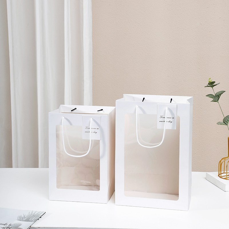 开窗手提袋 鲜花橱窗袋 情人节礼品袋网红鲜花花束包装袋地摊批发