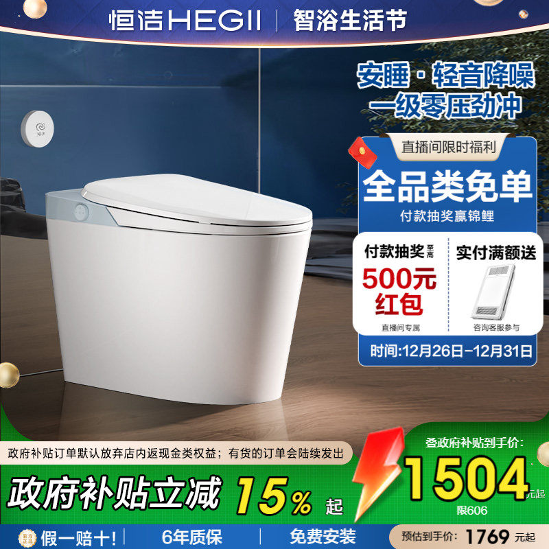 【安睡静冲】恒洁轻智能马桶座圈加热自动坐便器小户型家零压606