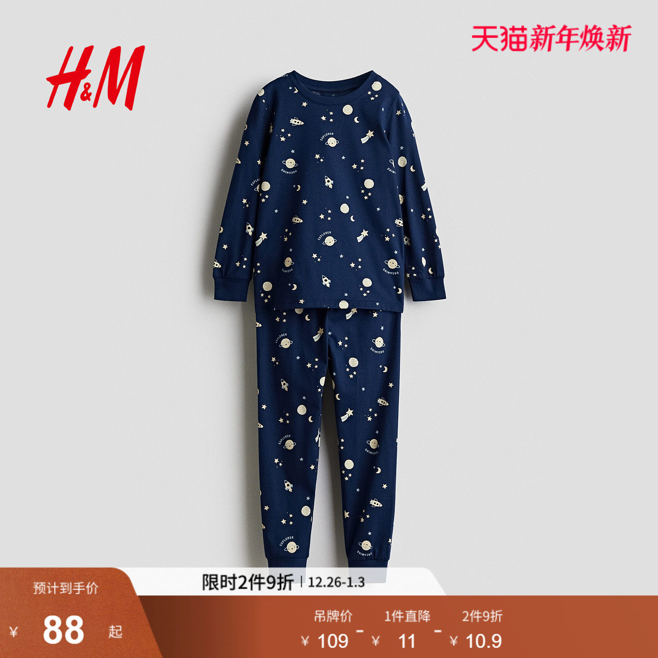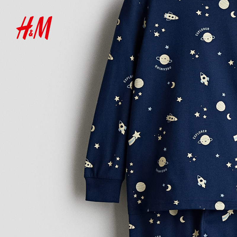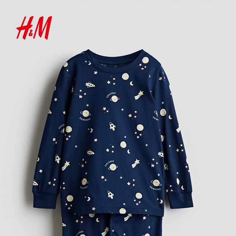 HM童装男童套装2025冬季新款柔软棉质印花汗布睡衣套装1234973